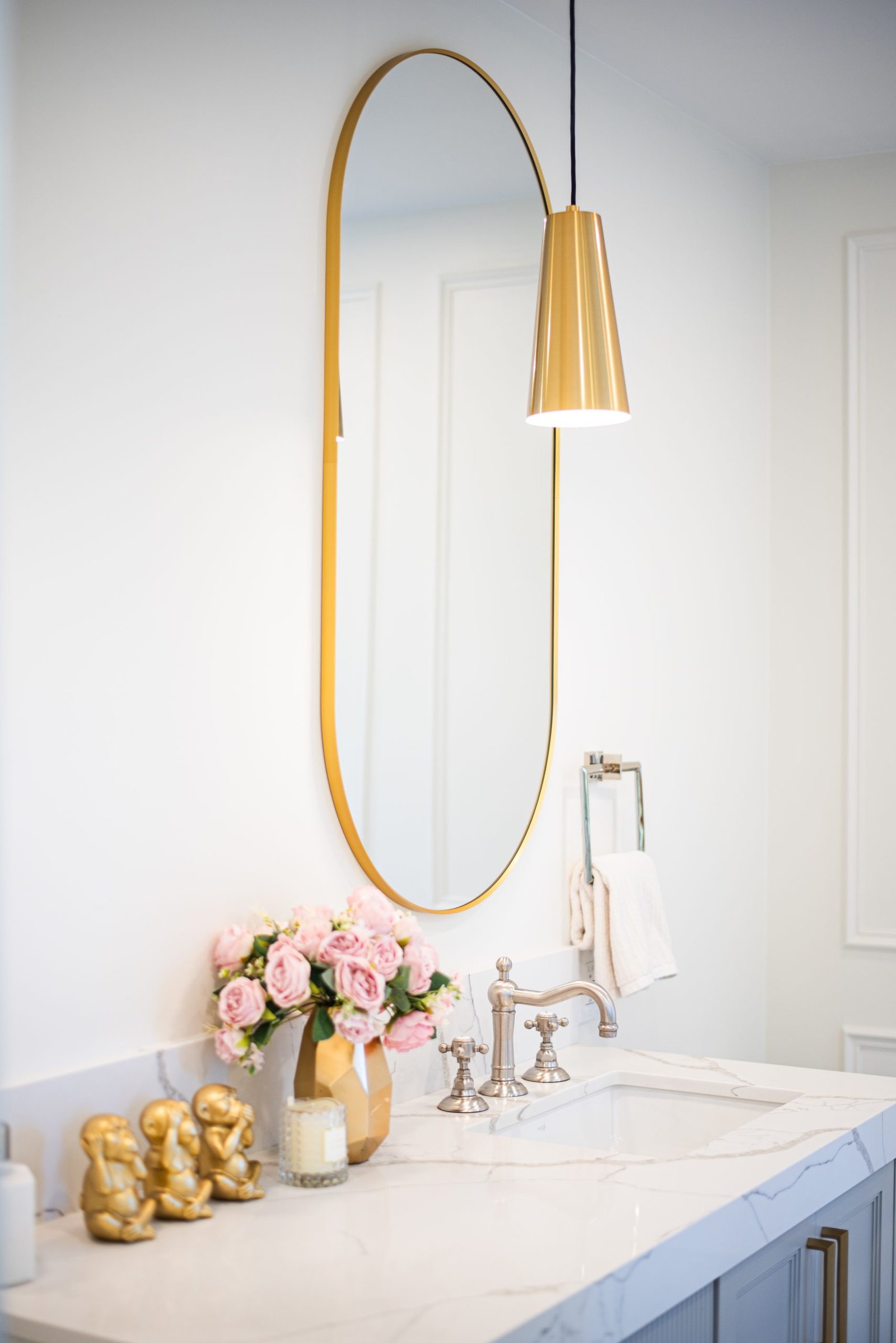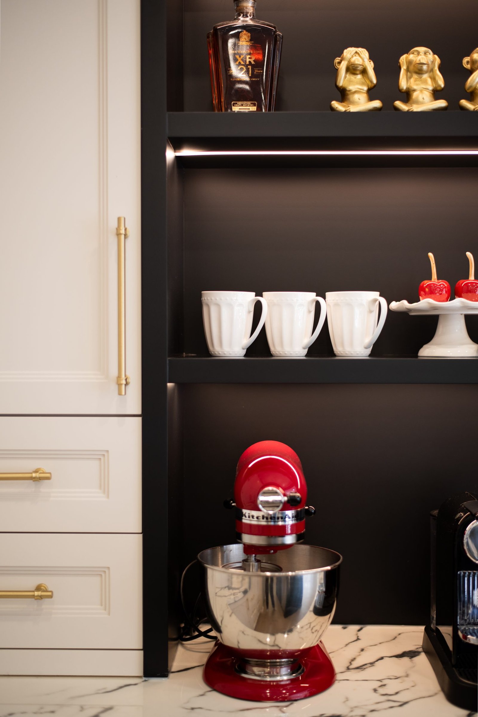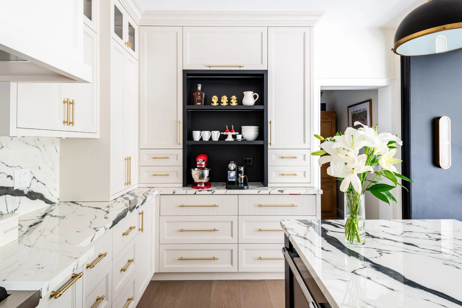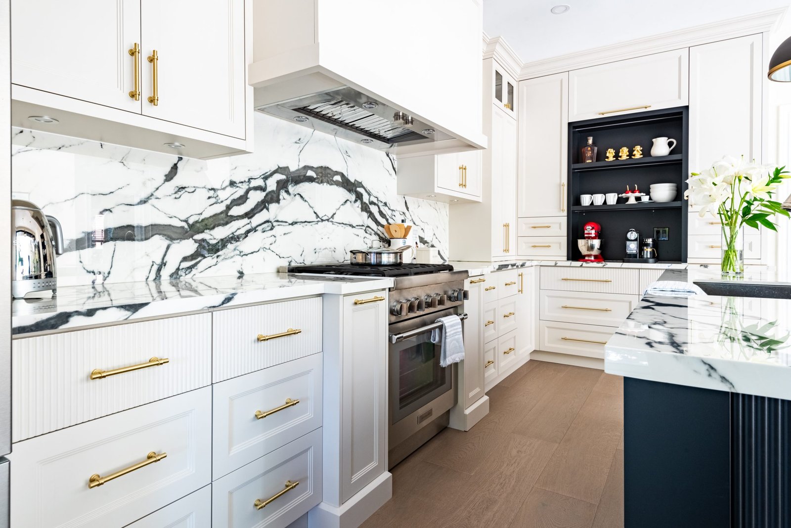 Nestled in the heart of a vibrant neighbourhood, this project showcases a bold and dramatic transformation for a young couple’s home. Encompassing a full-house renovation, we re-imagined the first and second floors, including the kitchen, dining area, two bathrooms, mudroom, laundry room, and staircase. The design, completed in just four weeks, cantered on striking contrasts, with dramatic interplay between light and dark tones creating a visually captivating aesthetic. With a construction period of eight weeks and a budget of $200,000, the result is a harmonious blend of functionality and bold design, perfectly tailored to the couple’s modern lifestyle. The kitchen underwent a transformative redesign, driven by the clients’ vision for an open concept layout that seamlessly connects the living and dining But the true showstopper of this custom house is the home theater, which features a split floor level and comfortable seating for the whole family. It’s the perfect spot for movie nights or for catching the big game. And when you need to relax and unwind, the large walk-out basement is the perfect spot. It’s the perfect place to set up a home gym or create a cozy den. Every detail of this custom house has been carefully considered and expertly executed, resulting in a truly one-of-a-kind home. We are incredibly proud of the work that our team at Studiokimi Interior Design & Build has done on this project and we can’t wait to see what the future holds for us. In the laundry room, we embraced functionality without compromising on style. The modern design maintains continuity with the home’s overarching aesthetic, while checkered flooring introduces a playful yet timeless element, turning a practical space into one filled with character and interest. The bathrooms received a complete reimagination, blending functionality with refined design touches. Careful attention was given to contrast, with thoughtfully chosen flooring and wall finishes creating a dynamic yet harmonious interplay. This design approach ensures that each bathroom feels refreshing and rejuvenating, offering a perfect retreat for our clients. Every space in this home reflects a balance between practicality and bespoke design, capturing our clients’ unique vision while ensuring seamless transitions throughout.
