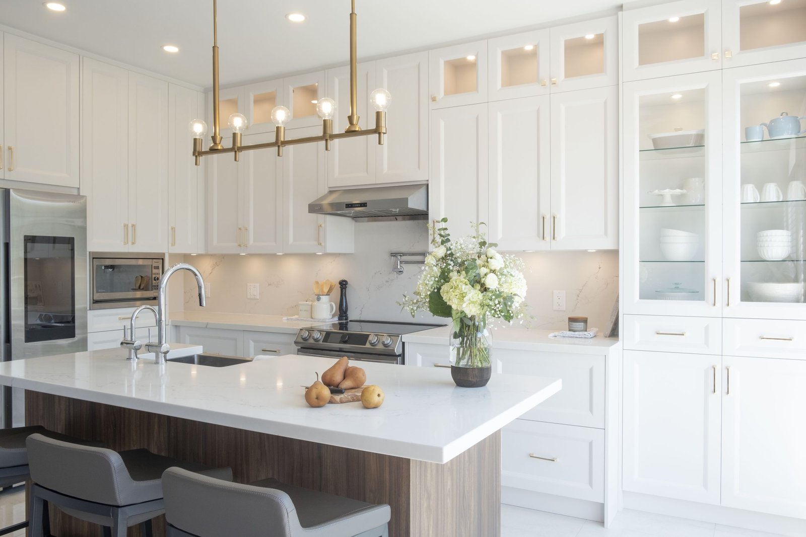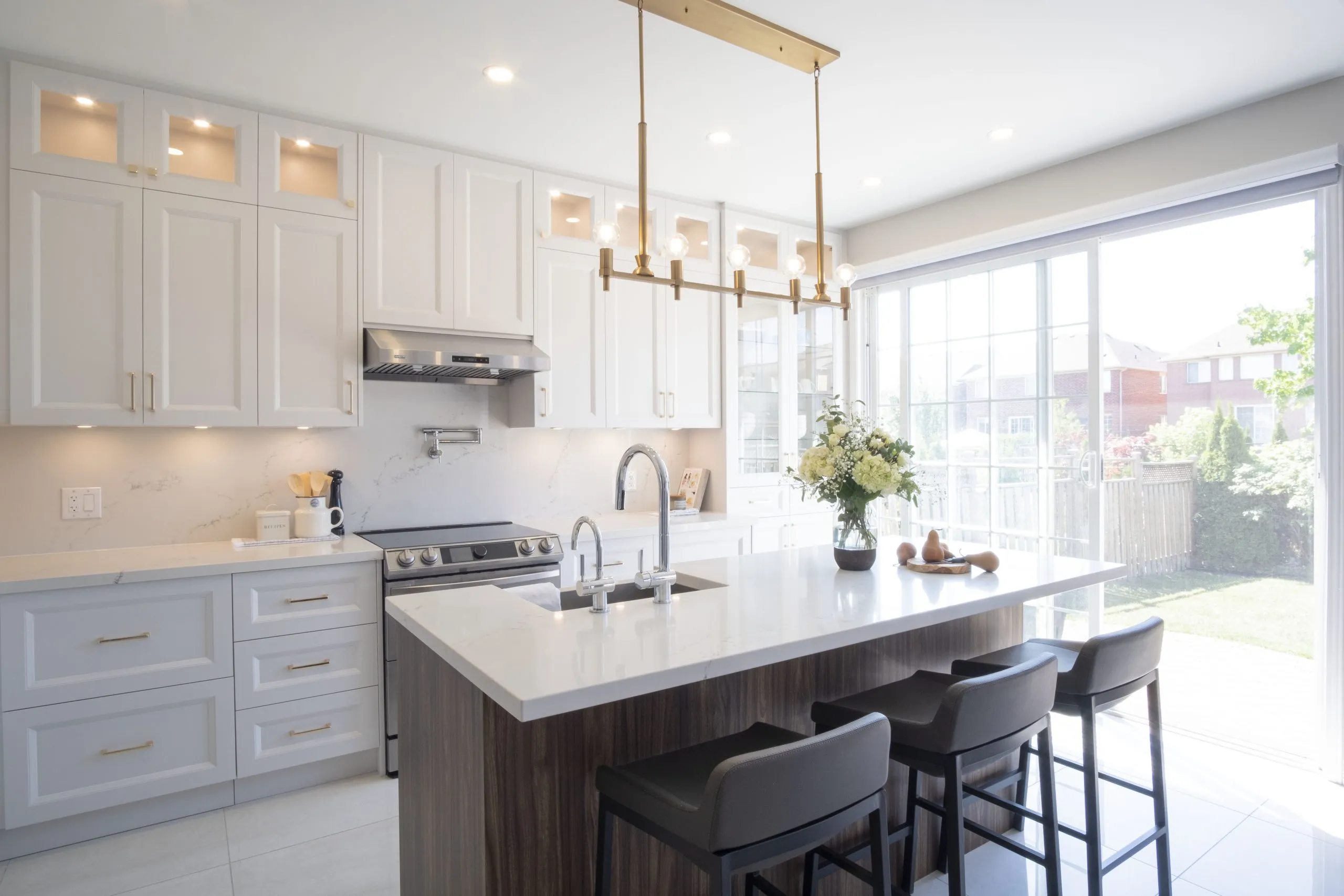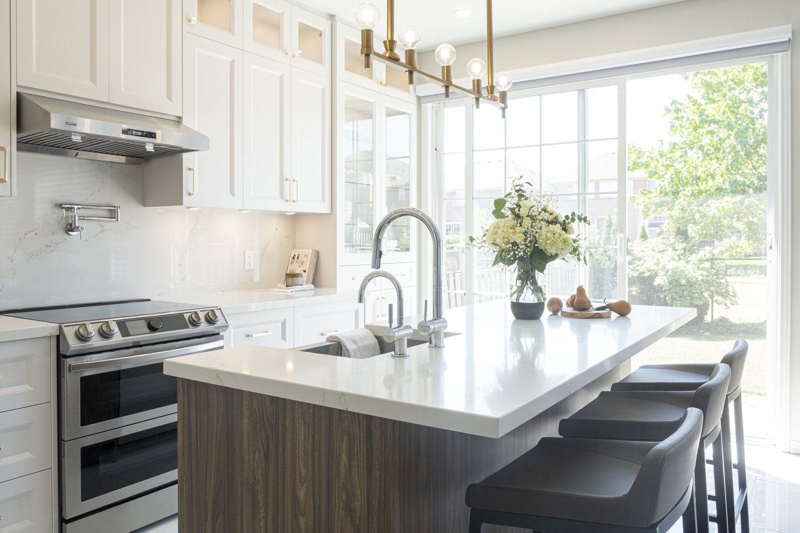 In 2022, our team at Studiokimi Interior Design & Build completed a design & build project in Erin Mills, Mississauga. This kitchen and living room renovation, tailored to the needs of young professionals, had a cost of between $70,000 and $100,000. Our clients spend a significant amount of time in the kitchen and our focus was to design a space that was both functional and beautiful. Budgeting and planning were key to the success of this project and we worked with our clients to source high-quality materials that fit within their budget. The pandemic presented challenges such as material and labor shortages and supply chain issues, but we were able to overcome these challenges by carefully sourcing stocked and local materials and wisely scheduling construction trades. The renovation included a kitchen with a simple yet elegant design, featuring a natural color palette and a wood-textured island as an accent. We also assisted with the selection of materials, colors, furniture, and lighting, and the installation of motorized window coverings. Every detail of this renovation has been carefully planned and expertly executed, resulting in a space that our clients will enjoy for years to come.