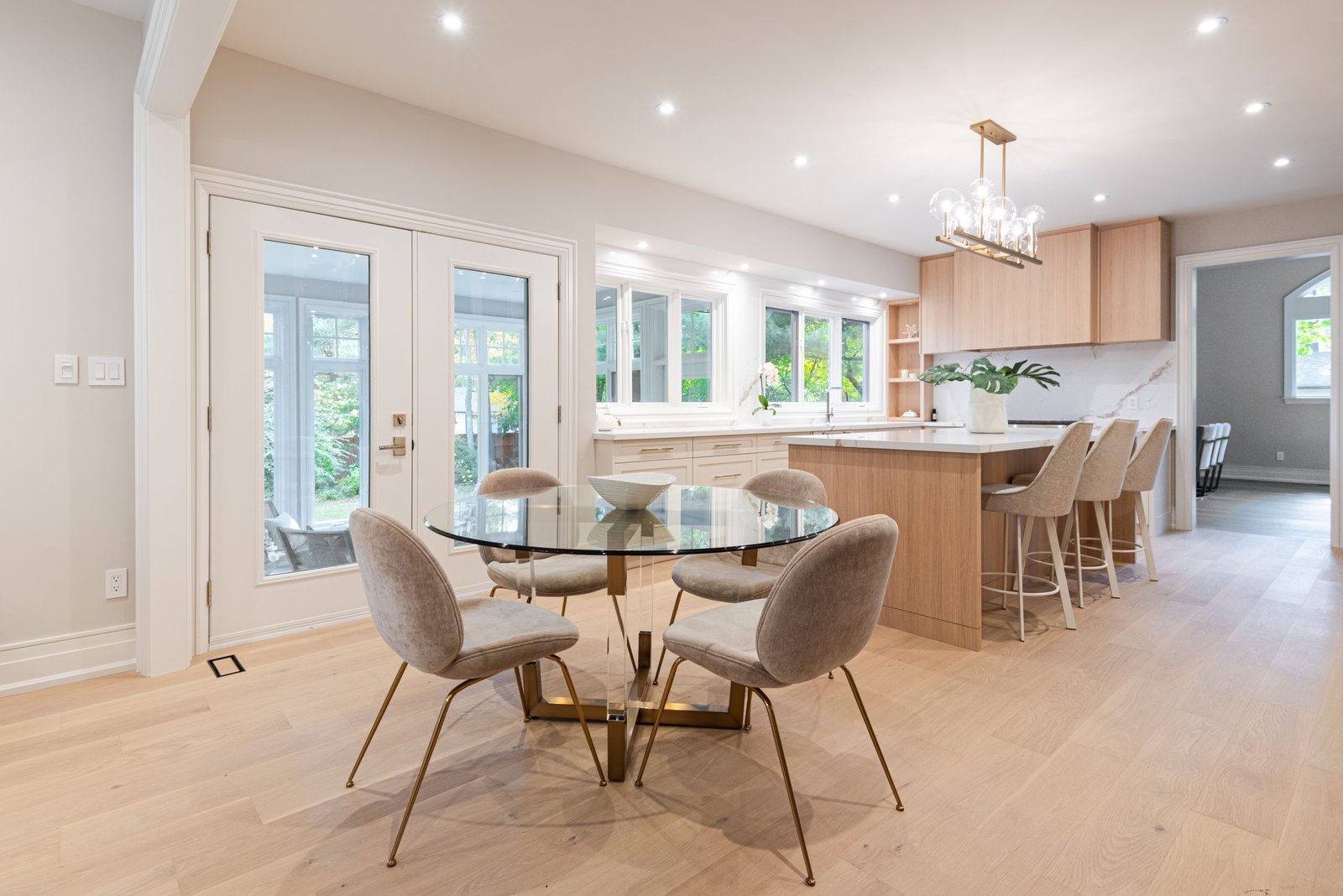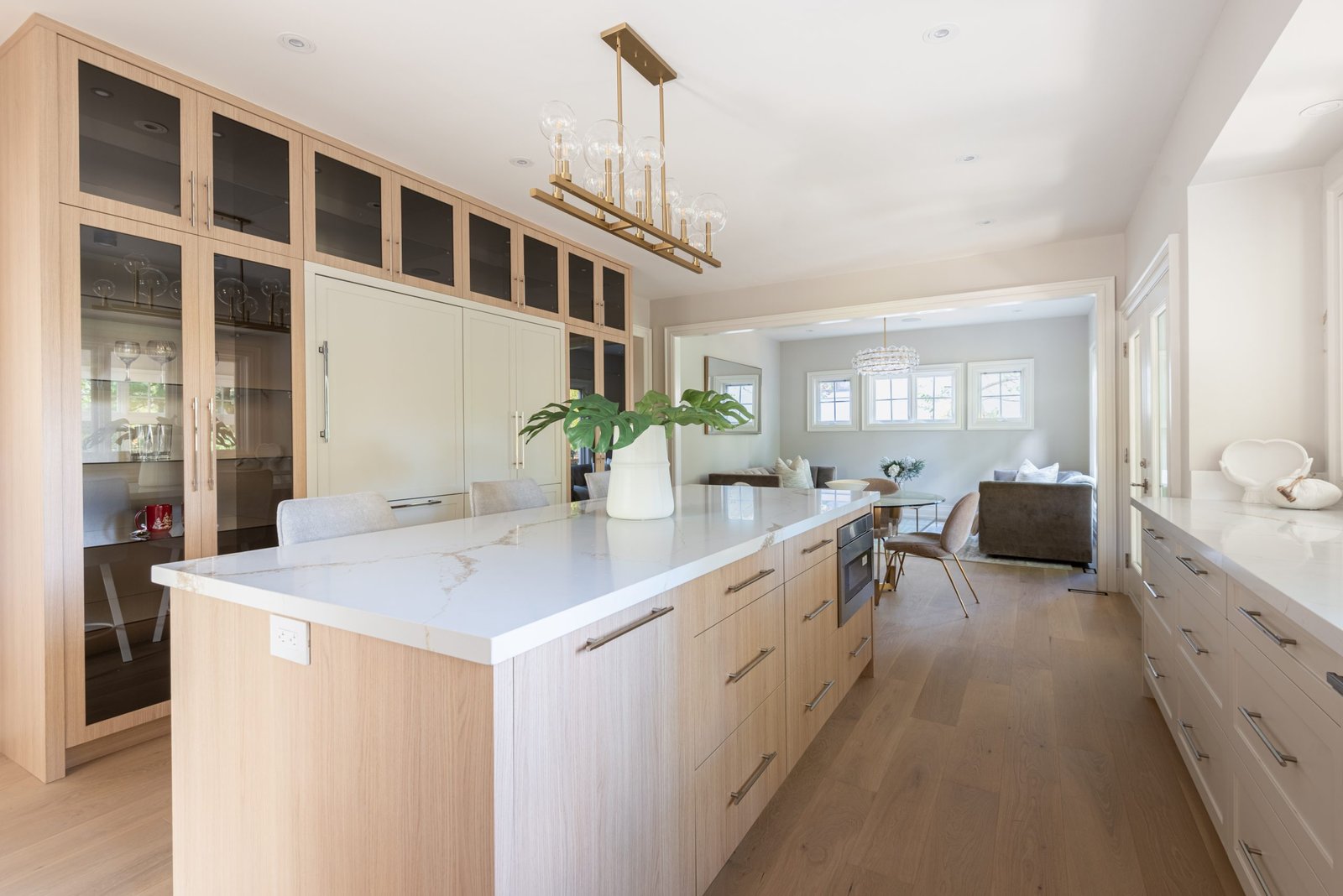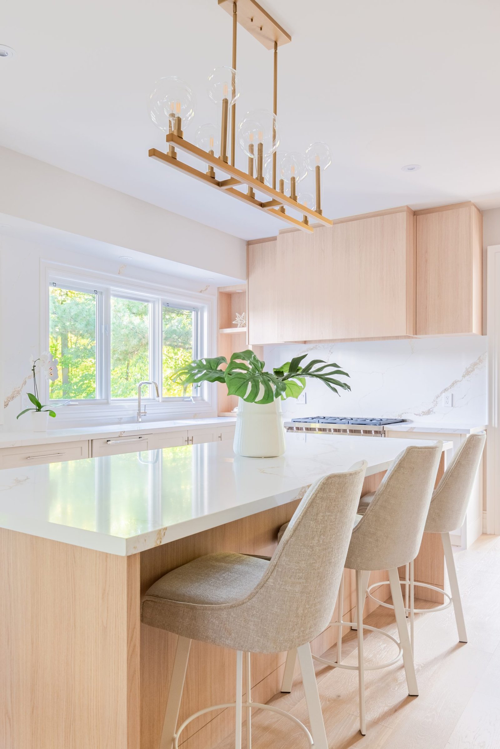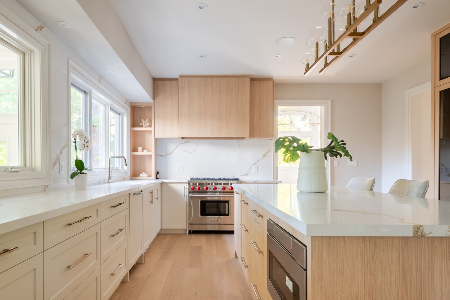Nestled in the pristine streets of South Oakville, our recent project is a testament to transformative design. With a focus on tailored living, we embarked on a comprehensive modification of the floor plan, starting with the main floor. The kitchen and bathrooms underwent a radical redesign, featuring a warm and clean palette of light oak and off-white tones. Noteworthy details include smoked glass on tall cabinets, introducing subtle sophistication. featuring a warm and clean palette of light oak and off-white tones. Noteworthy details include smoked glass on tall cabinets, introducing subtle sophistication. An open-concept vision came to life as we seamlessly removed walls between the kitchen and family room, creating a harmonious living space. The second floor was strategically reconfigured, sacrificing a bedroom to accommodate a luxurious ensuite bathroom, meeting our client’s specific desires. This level now boasts three bedrooms, two ensuite bathrooms, and a thoughtfully crafted main bathroom. In the basement, we envisioned an entertainment area, offering our clients a dedicated space for memorable movie nights. This project reaffirms our belief that design should adapt to individuals, not the other way around. Tailoring each space to the unique needs and desires of our clients, this transitional house embodies a perfect blend of aesthetics and functionality, resulting in a residence that feels like a personalized sanctuary.