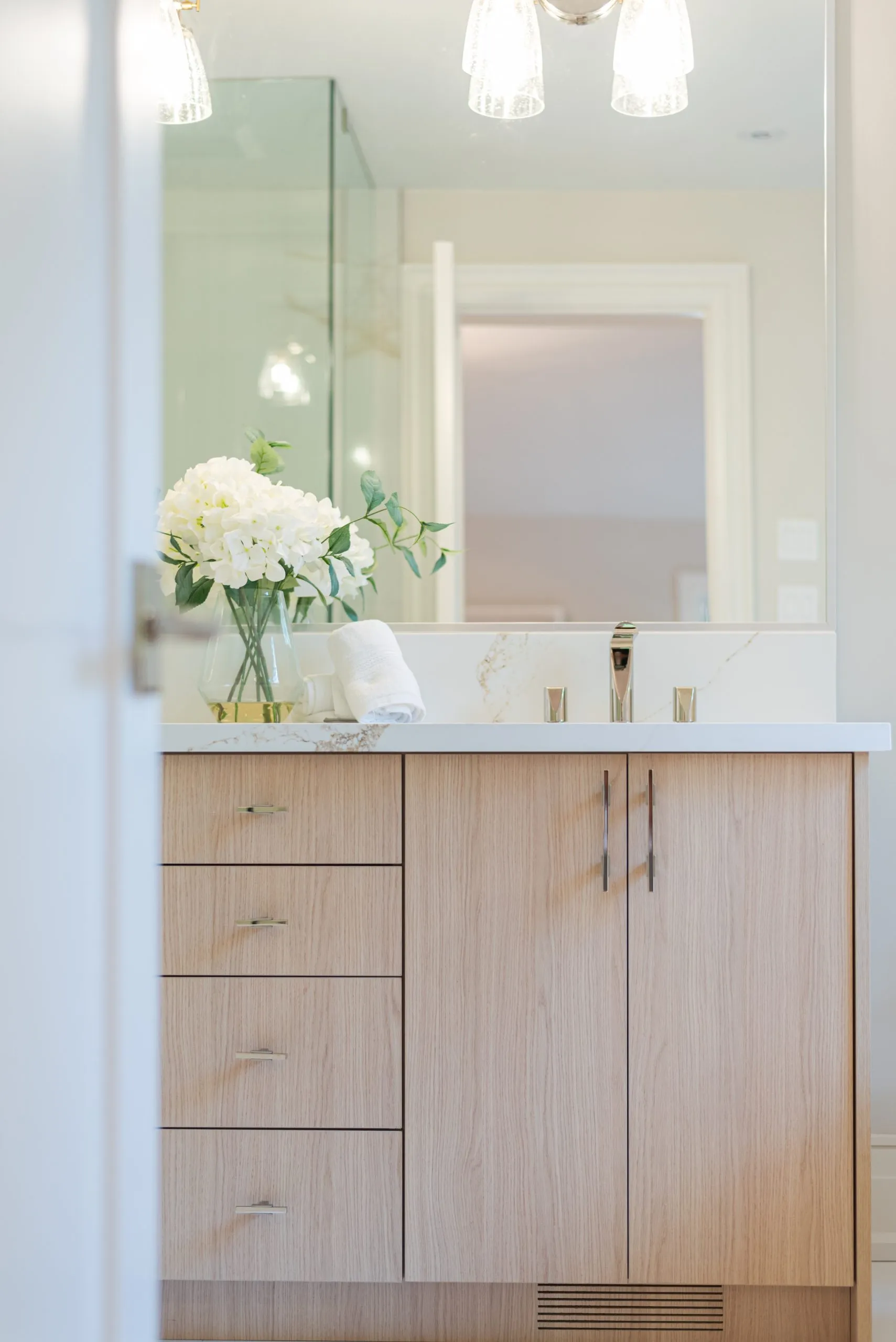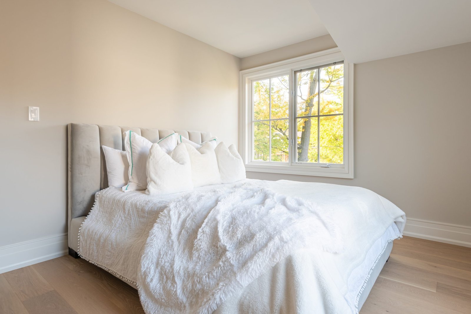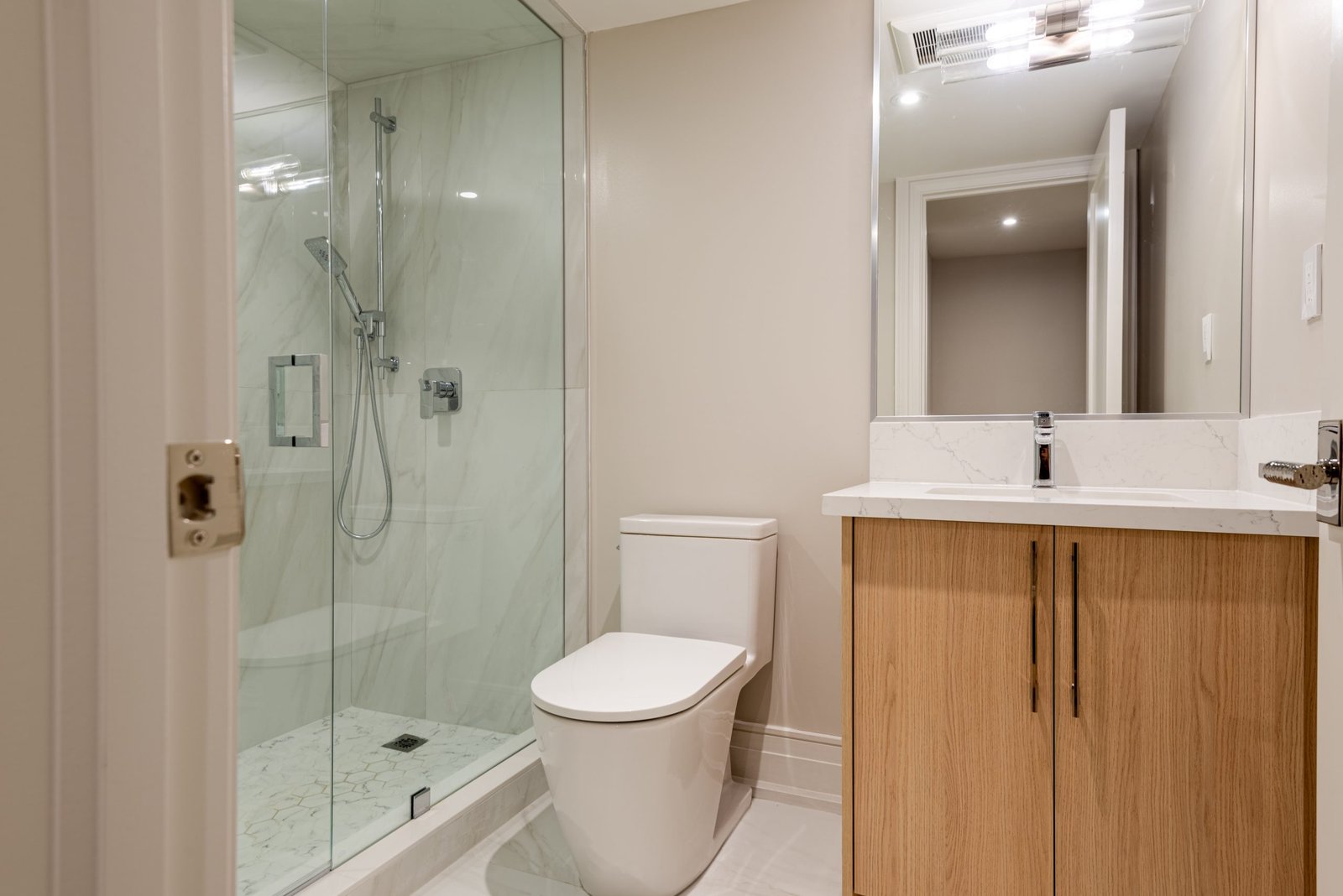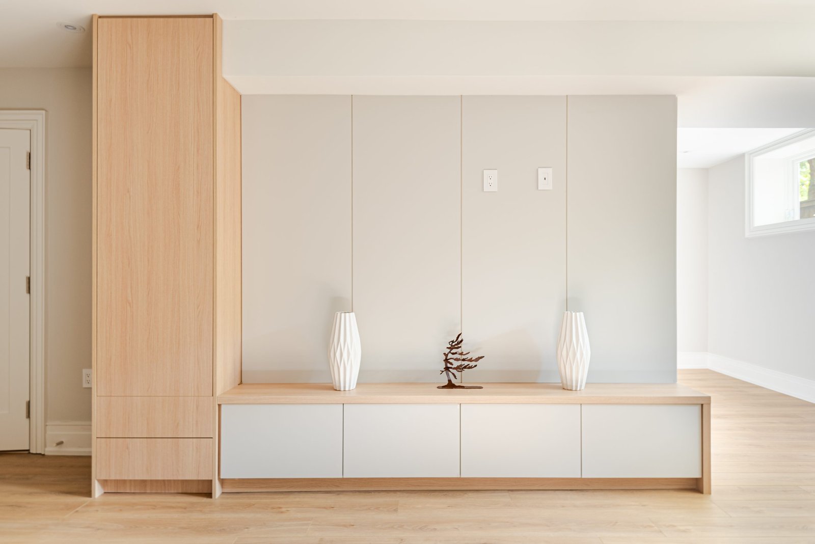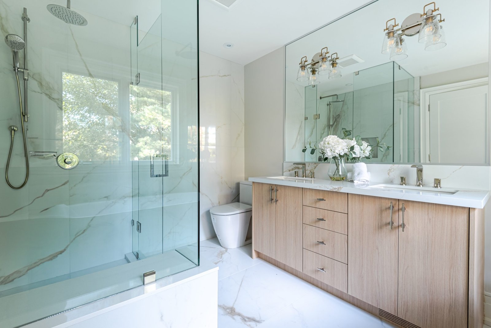 Nestled in the pristine streets of South Oakville, our recent project is a testament to transformative design. With a focus on tailored living, we embarked on a comprehensive modification of the floor plan, starting with the main floor. The kitchen and bathrooms underwent a radical redesign, featuring a warm and clean palette of light oak and off-white tones. Noteworthy details include smoked glass on tall cabinets, introducing subtle sophistication. featuring a warm and clean palette of light oak and off-white tones. Noteworthy details include smoked glass on tall cabinets, introducing subtle sophistication. An open-concept vision came to life as we seamlessly removed walls between the kitchen and family room, creating a harmonious living space. The second floor was strategically reconfigured, sacrificing a bedroom to accommodate a luxurious ensuite bathroom, meeting our client’s specific desires. This level now boasts three bedrooms, two ensuite bathrooms, and a thoughtfully crafted main bathroom. In the basement, we envisioned an entertainment area, offering our clients a dedicated space for memorable movie nights. This project reaffirms our belief that design should adapt to individuals, not the other way around. Tailoring each space to the unique needs and desires of our clients, this transitional house embodies a perfect blend of aesthetics and functionality, resulting in a residence that feels like a personalized sanctuary.