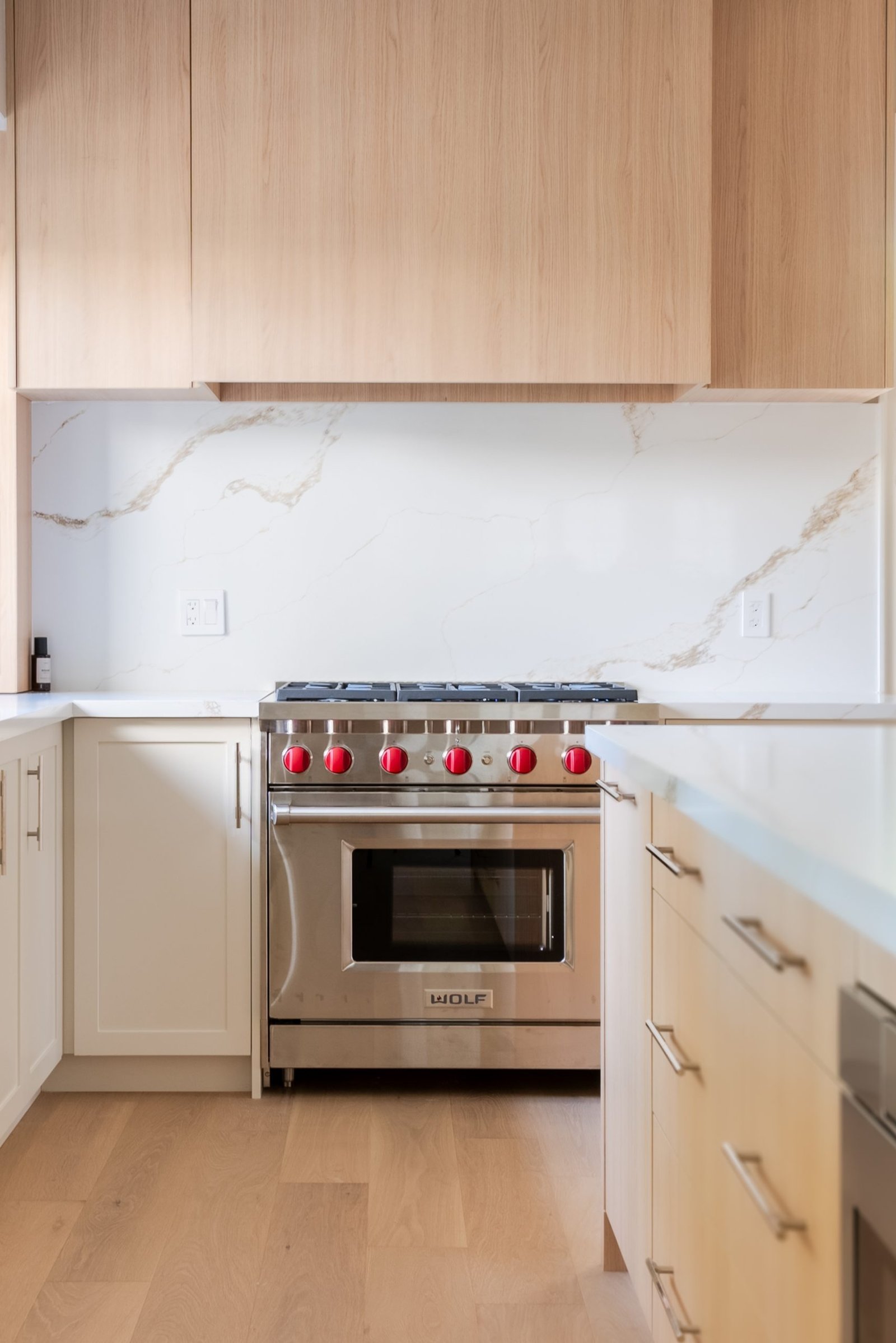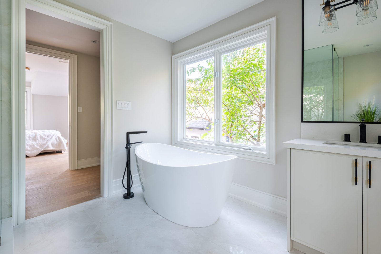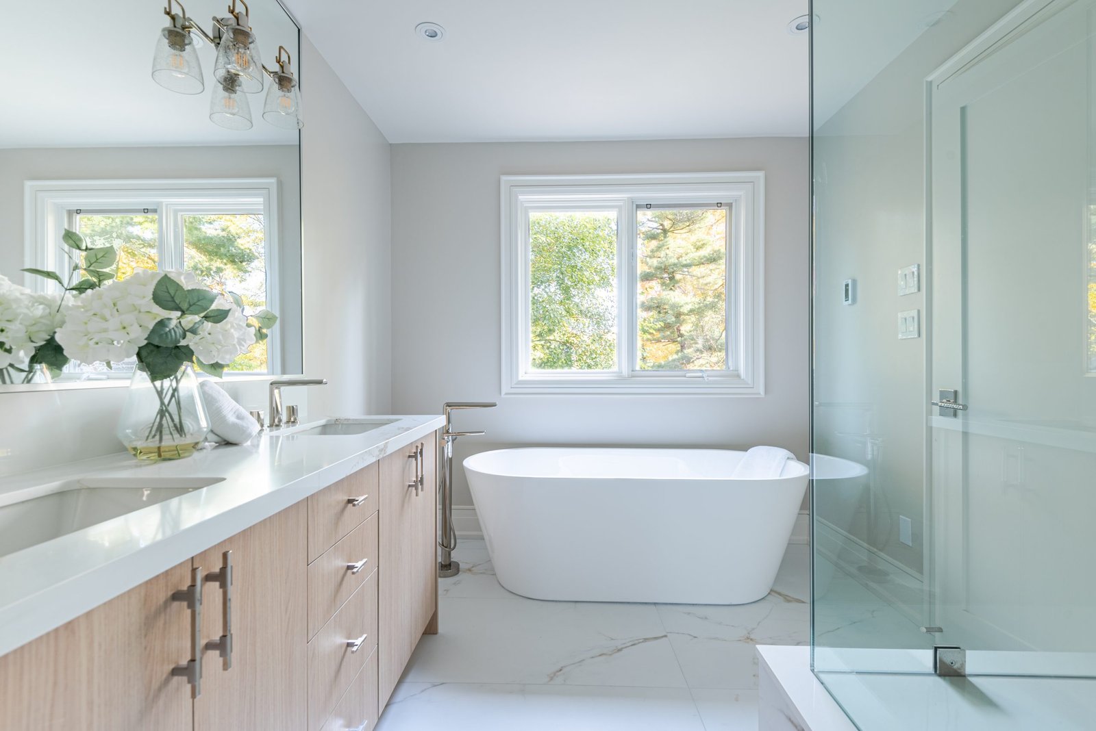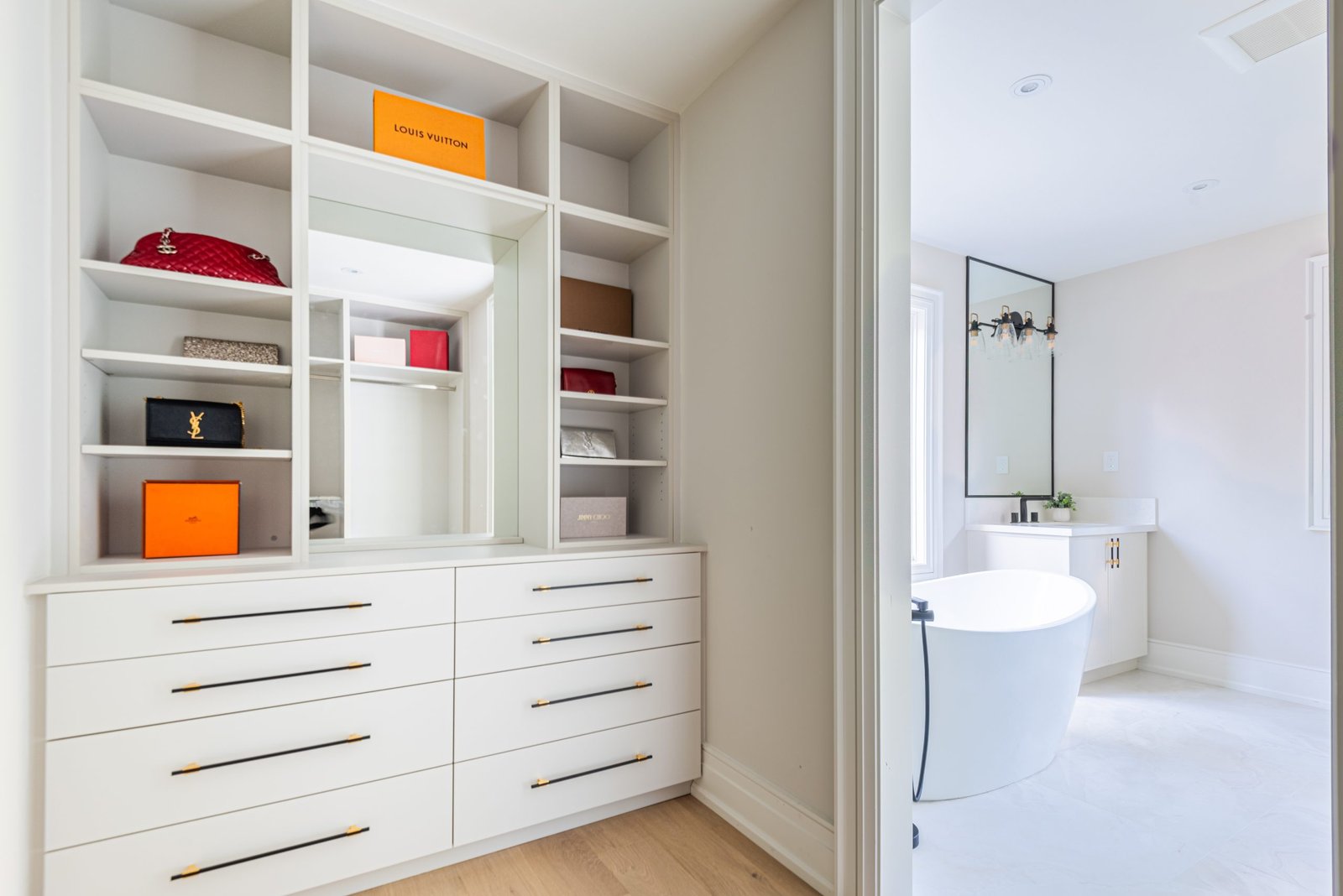 Nestled in the pristine streets of South Oakville, our recent project is a testament to transformative design. With a focus on tailored living, we embarked on a comprehensive modification of the floor plan, starting with the main floor. The kitchen and bathrooms underwent a radical redesign, featuring a warm and clean palette of light oak and off-white tones. Noteworthy details include smoked glass on tall cabinets, introducing subtle sophistication. featuring a warm and clean palette of light oak and off-white tones. Noteworthy details include smoked glass on tall cabinets, introducing subtle sophistication. An open-concept vision came to life as we seamlessly removed walls between the kitchen and family room, creating a harmonious living space. The second floor was strategically reconfigured, sacrificing a bedroom to accommodate a luxurious ensuite bathroom, meeting our client’s specific desires. This level now boasts three bedrooms, two ensuite bathrooms, and a thoughtfully crafted main bathroom. In the basement, we envisioned an entertainment area, offering our clients a dedicated space for memorable movie nights. This project reaffirms our belief that design should adapt to individuals, not the other way around. Tailoring each space to the unique needs and desires of our clients, this transitional house embodies a perfect blend of aesthetics and functionality, resulting in a residence that feels like a personalized sanctuary.
