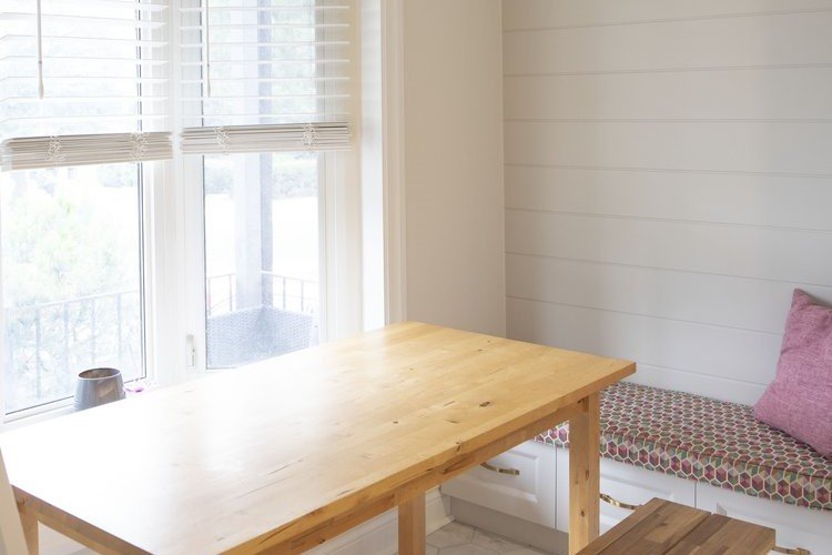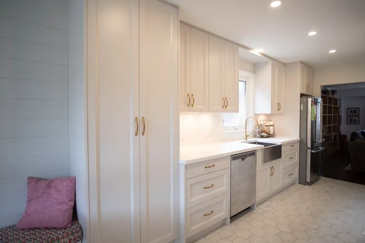 A transitional kitchen design crafted for a space under 500 square feet. Nestled within a cozy footprint, our team has successfully transformed this area into a bright and airy culinary haven. One of the standout features of this design is the custom bench seat, meticulously curated to elevate both style and functionality. A pop of vibrant color adds a playful touch, infusing the space with personality and charm. adding to the visual intrigue. the vertical shiplap board brings texture and depth to the walls, creating a dynamic backdrop that effortlessly ties together the design elements. This unique touch adds a touch of classic warmth while maintaining a contemporary appeal, perfectly aligning with the transitional theme. In this project, we’ve harmoniously blended form and function to create a kitchen that maximizes every inch of the space, providing a seamless transition between style aesthetics. The result is a captivating kitchen design that showcases how even a smaller area can radiate spaciousness, elegance, and individuality.