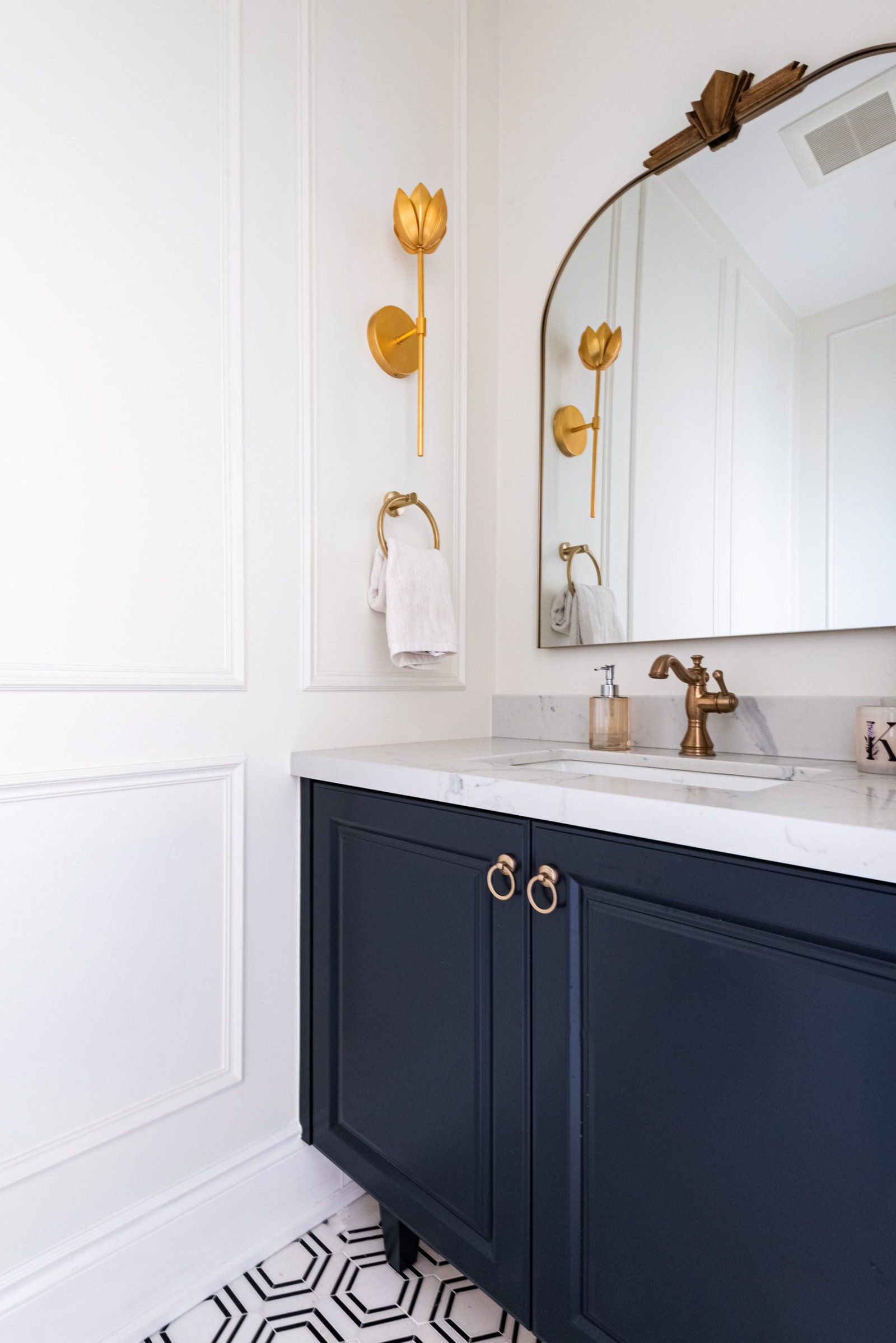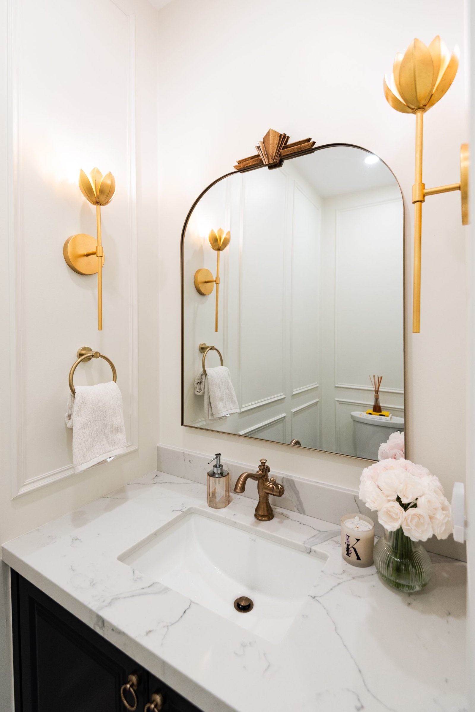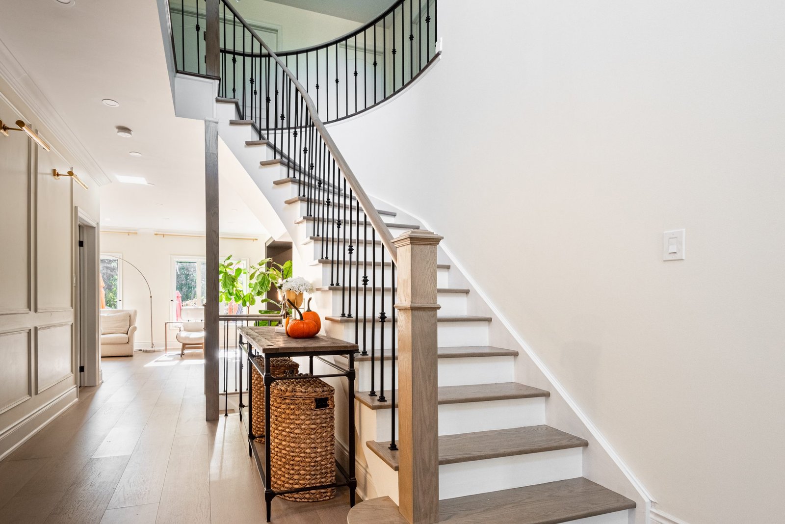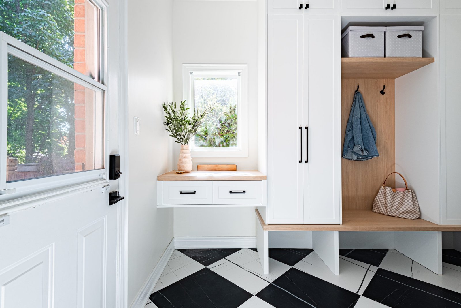 Nestled in the heart of a vibrant neighbourhood, this project showcases a bold and dramatic transformation for a young couple’s home. Encompassing a full-house renovation, we re-imagined the first and second floors, including the kitchen, dining area, two bathrooms, mudroom, laundry room, and staircase. The design, completed in just four weeks, cantered on striking contrasts, with dramatic interplay between light and dark tones creating a visually captivating aesthetic. With a construction period of eight weeks and a budget of $200,000, the result is a harmonious blend of functionality and bold design, perfectly tailored to the couple’s modern lifestyle. The kitchen underwent a transformative redesign, driven by the clients’ vision for an open concept layout that seamlessly connects the living and dining But the true showstopper of this custom house is the home theater, which features a split floor level and comfortable seating for the whole family. It’s the perfect spot for movie nights or for catching the big game. And when you need to relax and unwind, the large walk-out basement is the perfect spot. It’s the perfect place to set up a home gym or create a cozy den. Every detail of this custom house has been carefully considered and expertly executed, resulting in a truly one-of-a-kind home. We are incredibly proud of the work that our team at Studiokimi Interior Design & Build has done on this project and we can’t wait to see what the future holds for us. In the laundry room, we embraced functionality without compromising on style. The modern design maintains continuity with the home’s overarching aesthetic, while checkered flooring introduces a playful yet timeless element, turning a practical space into one filled with character and interest. The bathrooms received a complete reimagination, blending functionality with refined design touches. Careful attention was given to contrast, with thoughtfully chosen flooring and wall finishes creating a dynamic yet harmonious interplay. This design approach ensures that each bathroom feels refreshing and rejuvenating, offering a perfect retreat for our clients. Every space in this home reflects a balance between practicality and bespoke design, capturing our clients’ unique vision while ensuring seamless transitions throughout.