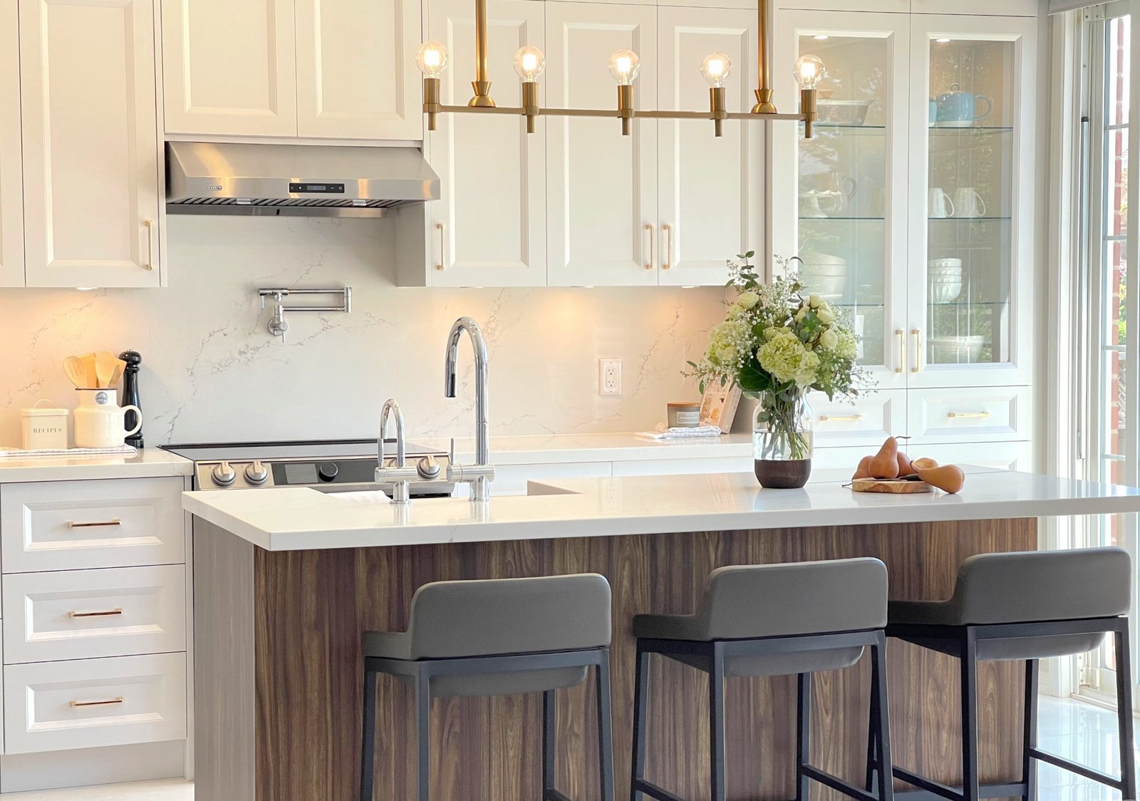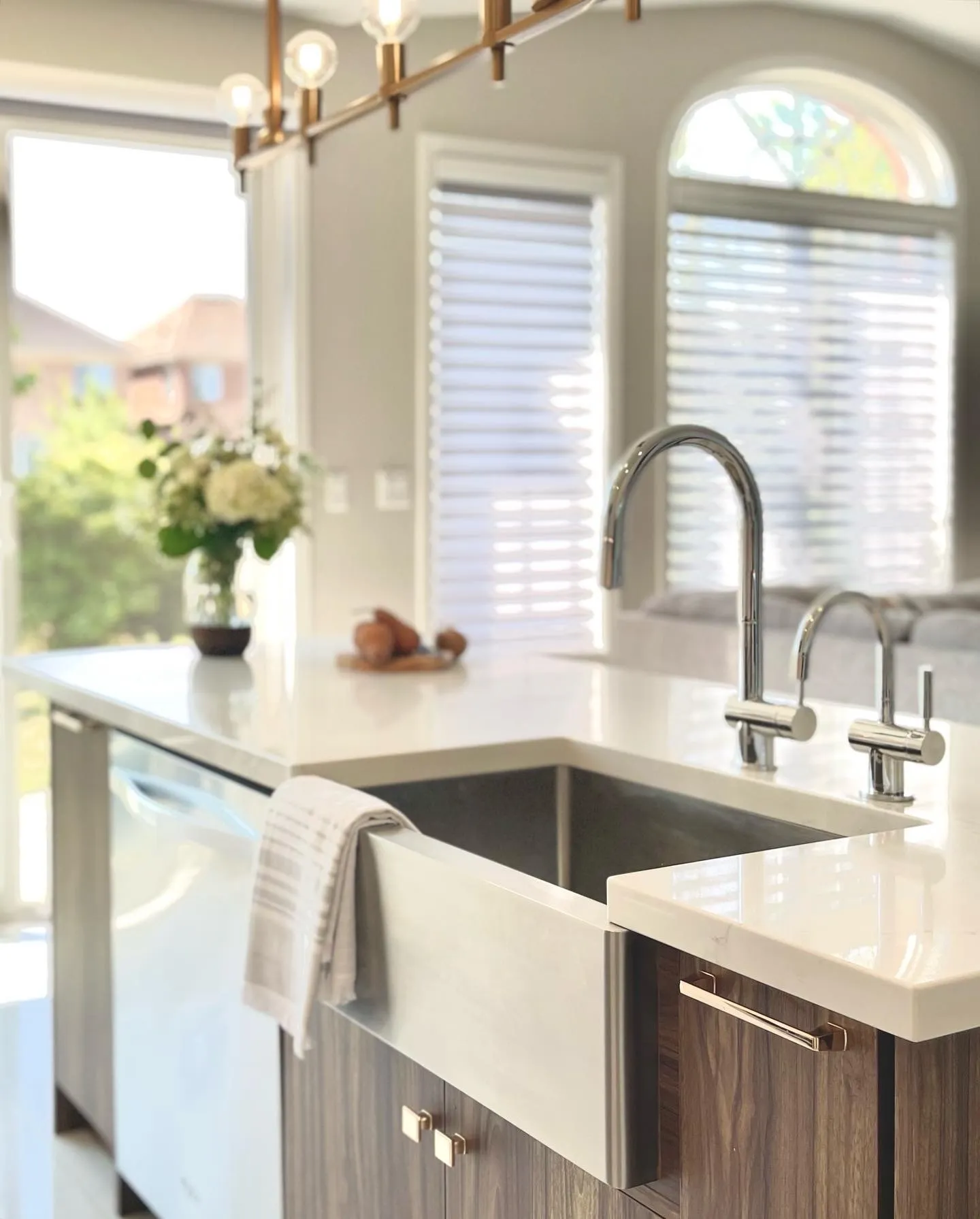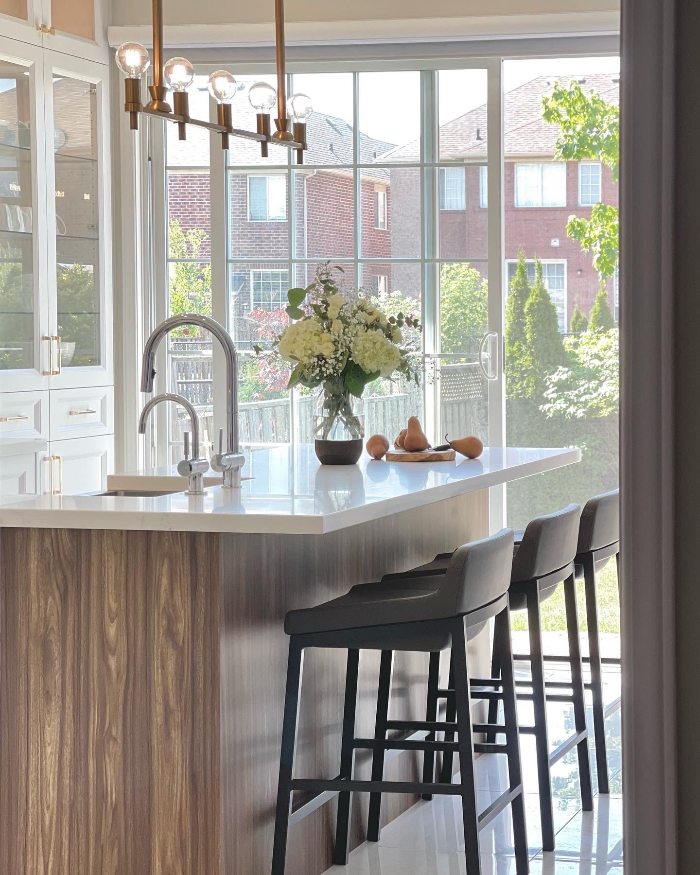 In 2022, our team at Studiokimi Interior Design & Build completed a design & build project in Erin Mills, Mississauga. This kitchen and living room renovation, tailored to the needs of young professionals, had a cost of between $70,000 and $100,000. Our clients spend a significant amount of time in the kitchen and our focus was to design a space that was both functional and beautiful. Budgeting and planning were key to the success of this project and we worked with our clients to source high-quality materials that fit within their budget. The pandemic presented challenges such as material and labor shortages and supply chain issues, but we were able to overcome these challenges by carefully sourcing stocked and local materials and wisely scheduling construction trades. The renovation included a kitchen with a simple yet elegant design, featuring a natural color palette and a wood-textured island as an accent. We also assisted with the selection of materials, colors, furniture, and lighting, and the installation of motorized window coverings. Every detail of this renovation has been carefully planned and expertly executed, resulting in a space that our clients will enjoy for years to come.