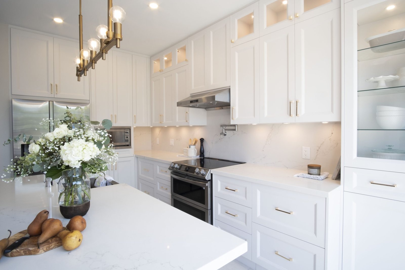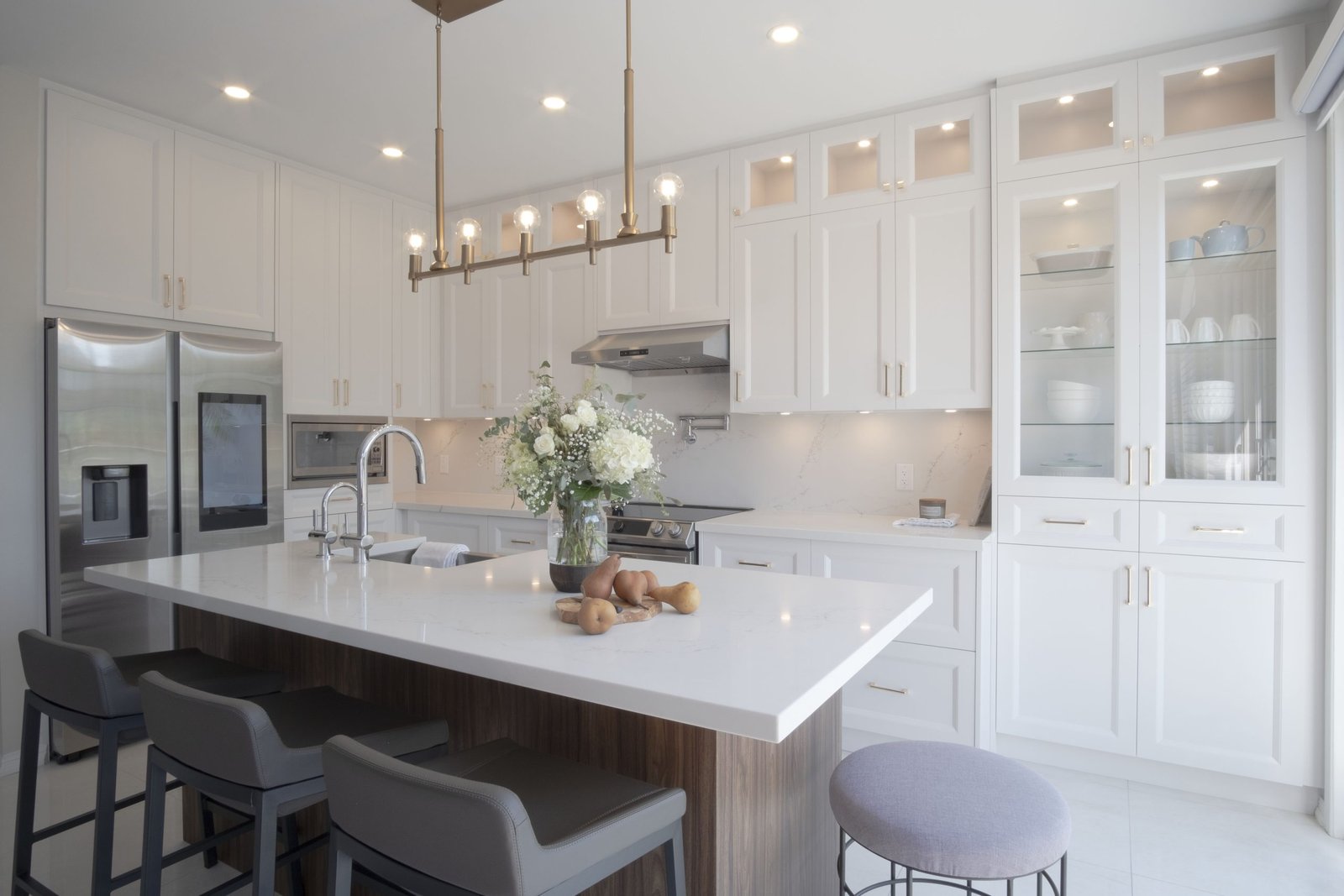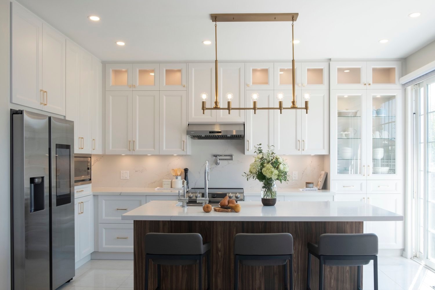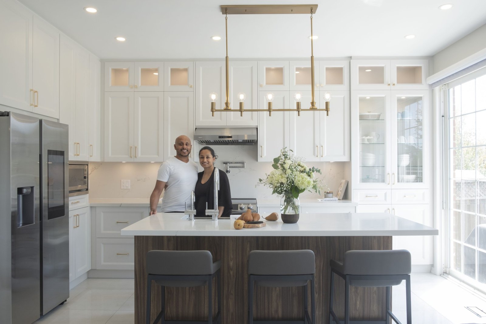 In 2022, our team at Studiokimi Interior Design & Build completed a design & build project in Erin Mills, Mississauga. This kitchen and living room renovation, tailored to the needs of young professionals, had a cost of between $70,000 and $100,000. Our clients spend a significant amount of time in the kitchen and our focus was to design a space that was both functional and beautiful. Budgeting and planning were key to the success of this project and we worked with our clients to source high-quality materials that fit within their budget. The pandemic presented challenges such as material and labor shortages and supply chain issues, but we were able to overcome these challenges by carefully sourcing stocked and local materials and wisely scheduling construction trades. The renovation included a kitchen with a simple yet elegant design, featuring a natural color palette and a wood-textured island as an accent. We also assisted with the selection of materials, colors, furniture, and lighting, and the installation of motorized window coverings. Every detail of this renovation has been carefully planned and expertly executed, resulting in a space that our clients will enjoy for years to come.