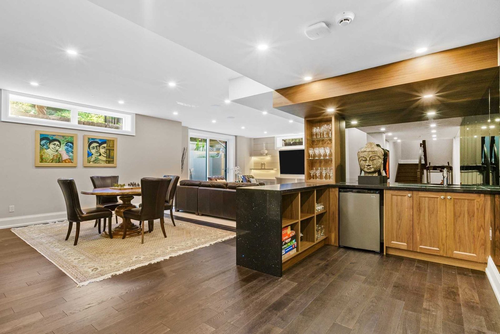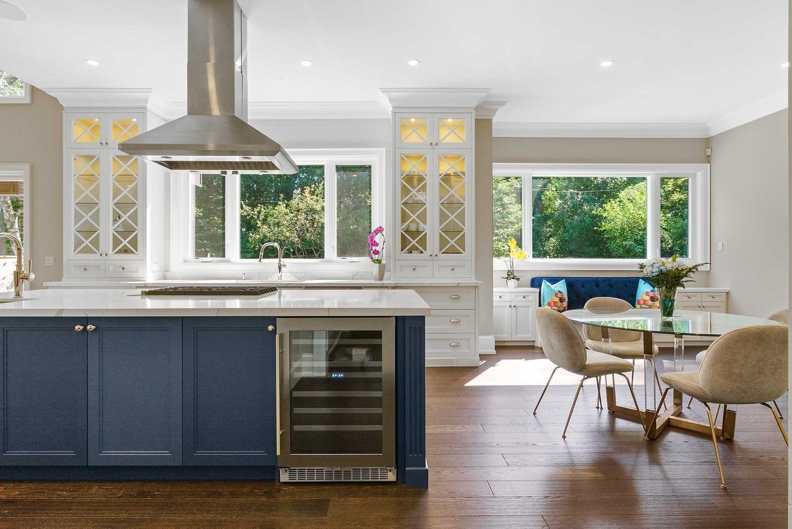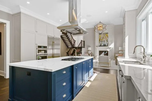 In 2018, our team at Studiokimi Interior Design & Build had the pleasure of working on a truly remarkable new construction project in the lakeshore area of Oakville. This stunning transitional-modern custom house had a project cost of over $1,000,000 and required the highest level of expertise in space planning, FF&E selection, and custom millwork design. As soon as you step into the living area, you are struck by the breathtaking 20′ high ceiling and the majestic pre-cast concrete fireplace mantel. The open floor plan allows for seamless flow between the living room, kitchen, and dining area, and the two-tone color scheme of the kitchen adds a touch of elegance. The kitchen itself is a chef’s dream, with plenty of counter space and storage, as well as a large island that is perfect for entertaining. But the true showstopper of this custom house is the home theater, which features a split floor level and comfortable seating for the whole family. It’s the perfect spot for movie nights or for catching the big game. And when you need to relax and unwind, the large walk-out basement is the perfect spot. It’s the perfect place to set up a home gym or create a cozy den. Every detail of this custom house has been carefully considered and expertly executed, resulting in a truly one-of-a-kind home. We are incredibly proud of the work that our team at Studiokimi Interior Design & Build has done on this project and we can’t wait to see what the future holds for us.
